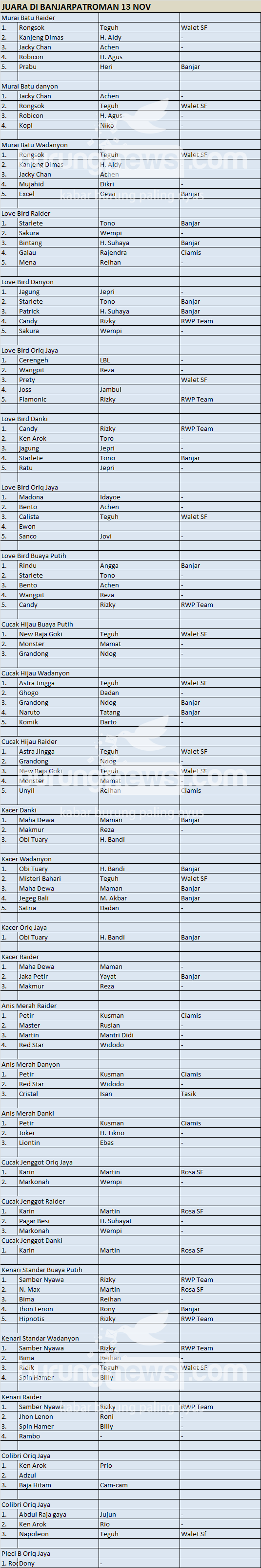 Hasil Lomba Burung