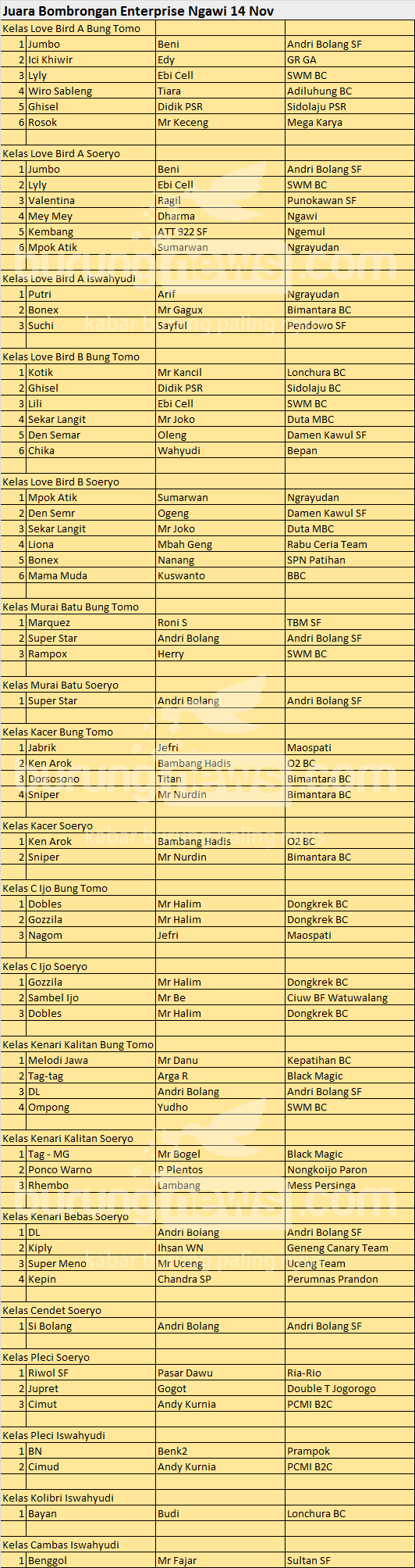 Judul : JUARA BOMBRONGAN ENTERPRISE NGAWI 14 NOV