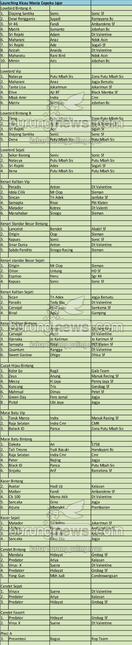 Judul : JUARA LAUNCHING KICAU MANIA CEPOKO JAJAR 20 NOV
