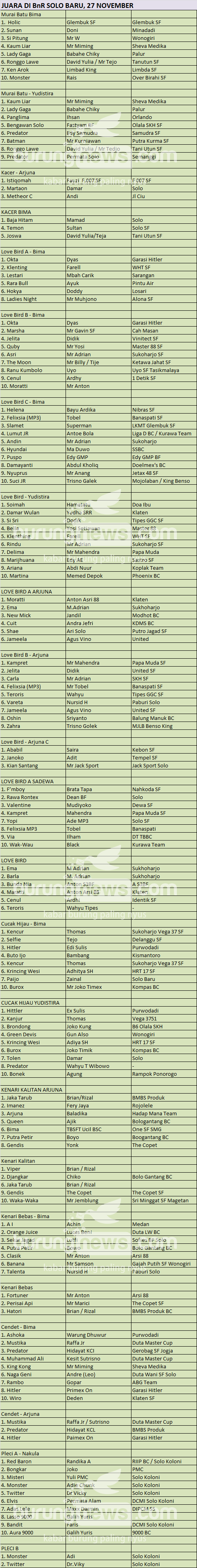 Hasil Lomba Burung