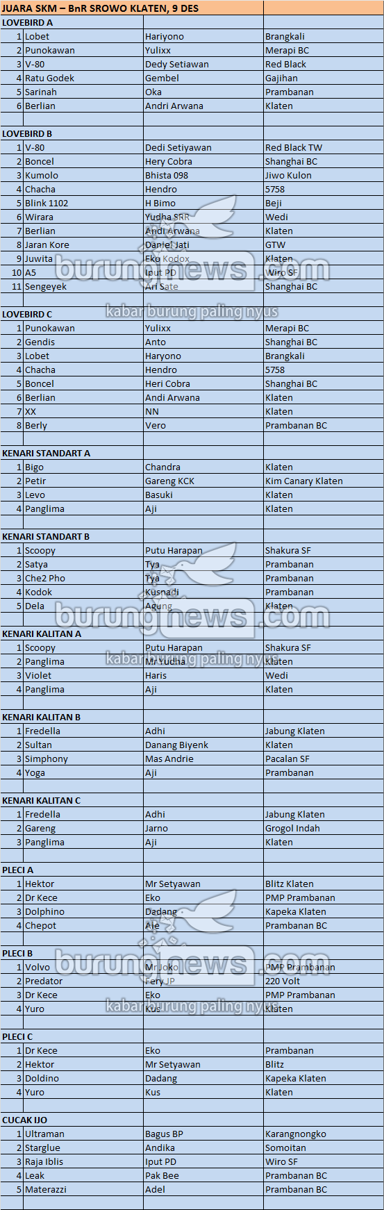 Hasil Lomba Burung