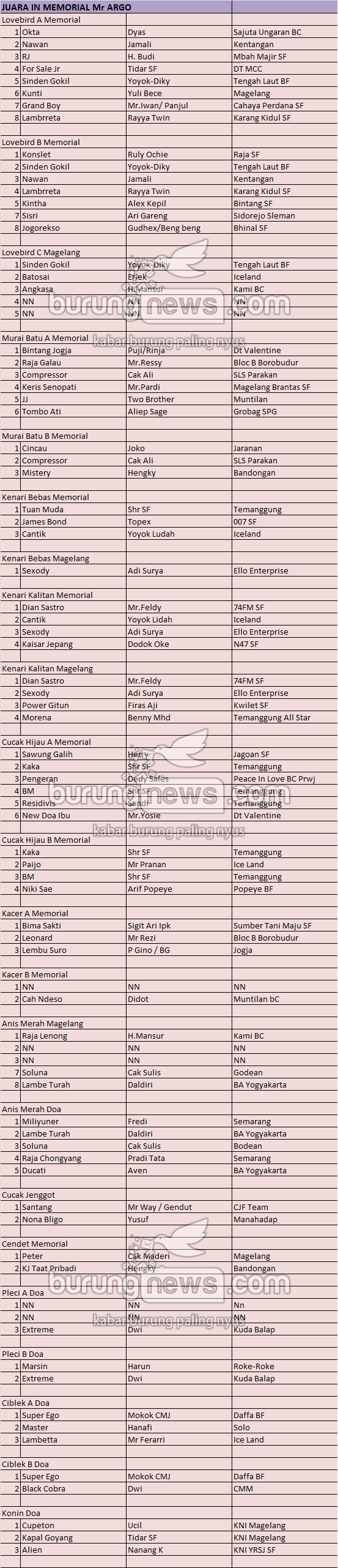 Judul : JUARA IN MEMORIAL Mr ARGO MAGELANG 12 DES