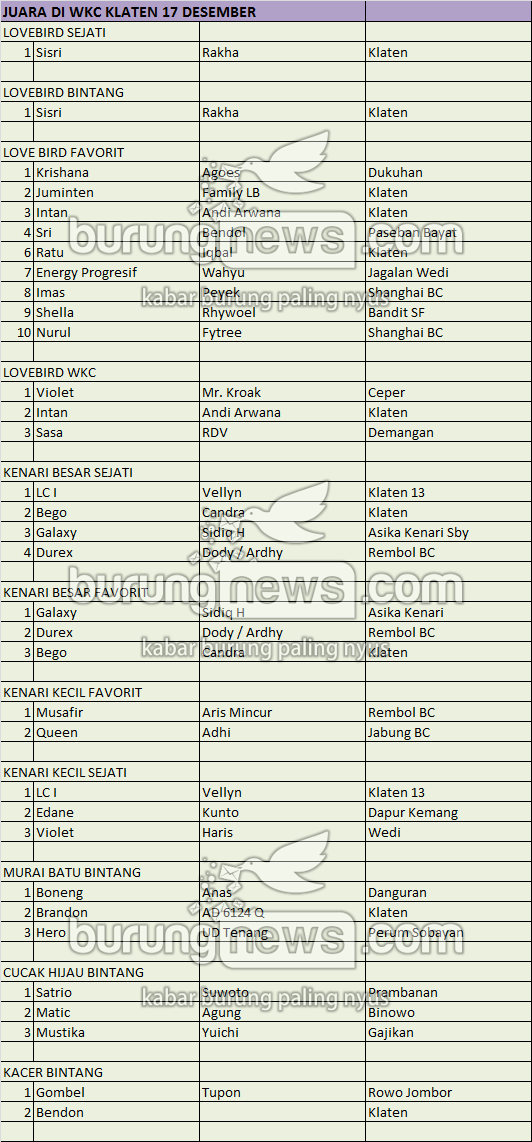 DATA JUARA LATBER KAMIS GALANG ARENA, KEPANJEN – MALANG: MB Joko Kendil dan CH Jabrix Double Winner, Kenari Stabil 4 Sesi