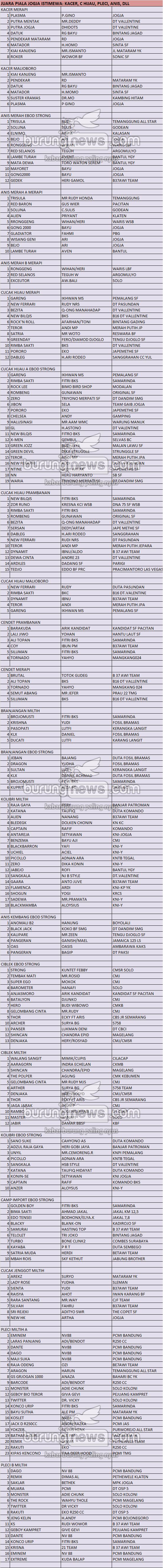 Judul : JUARA PIALA JOGJA ISTIMEWA 18 DES (KACER, C HIJAU, PLECI, ANIS, DLL)