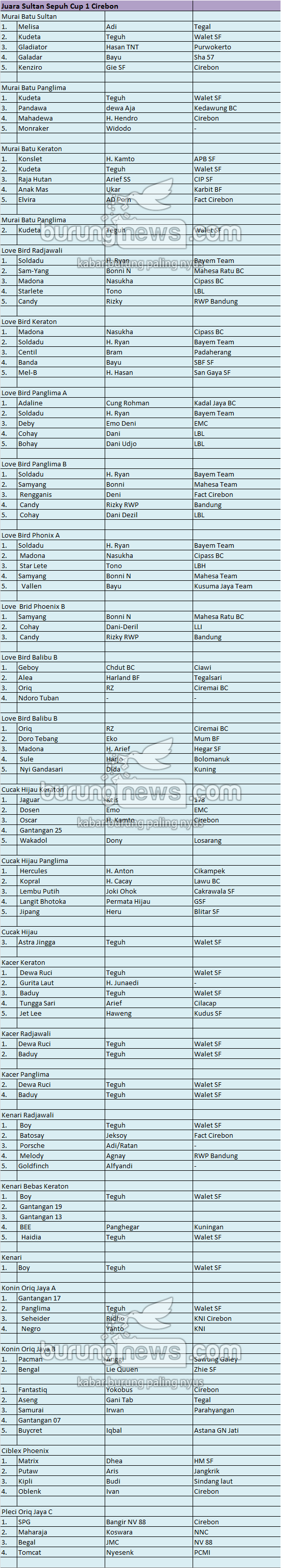 Hasil Lomba Burung