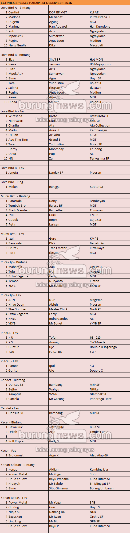 Hasil Lomba Burung