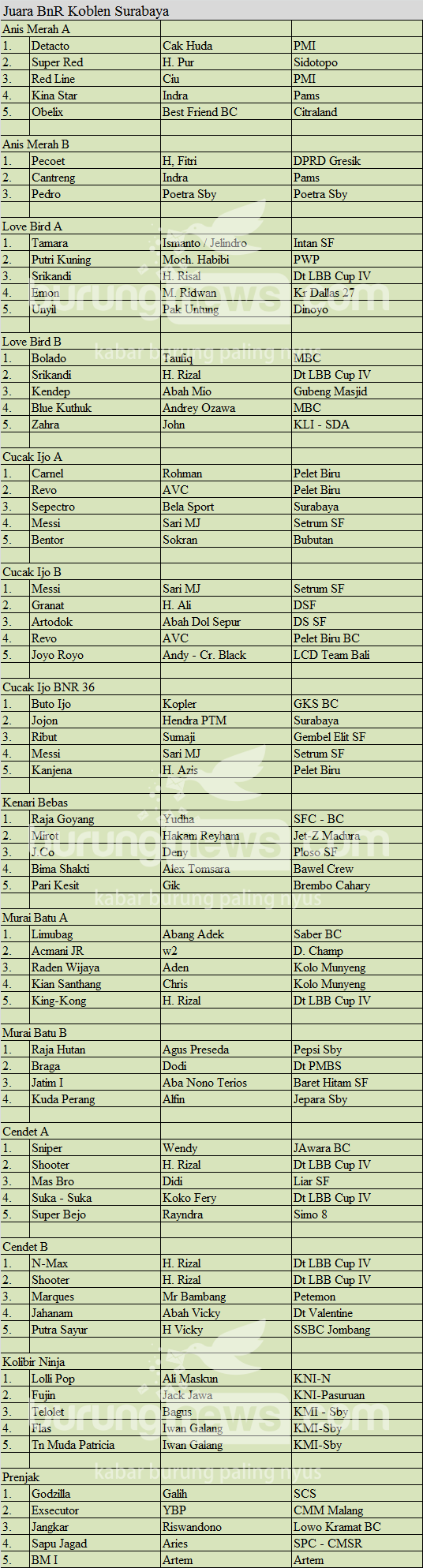 Hasil Lomba Burung
