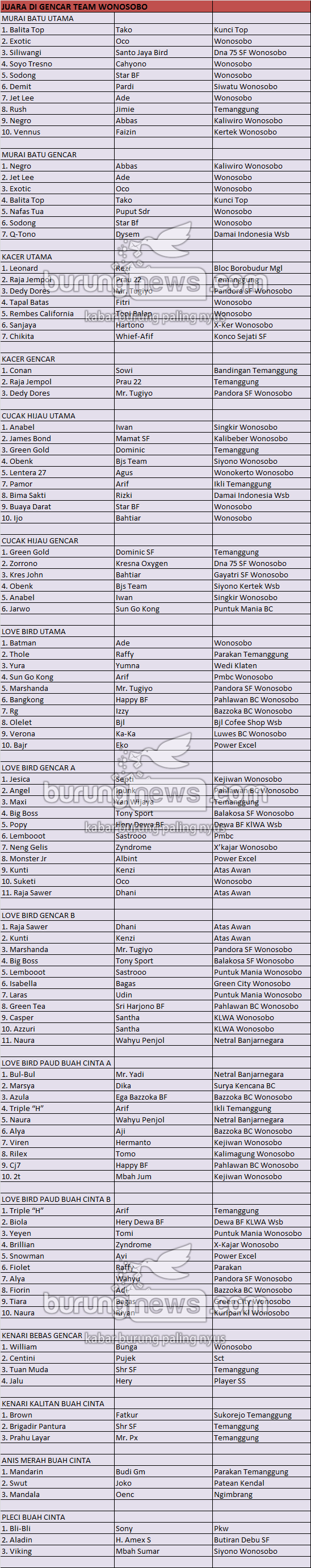 Hasil Lomba Burung