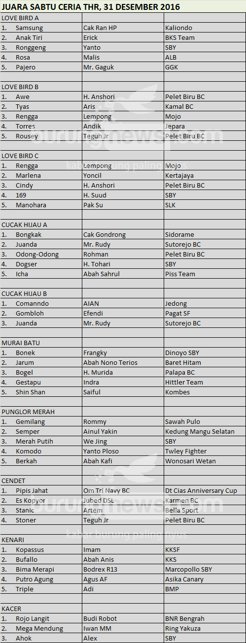 Hasil Lomba Burung