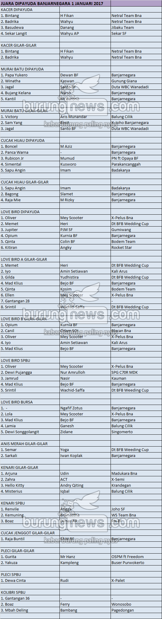 Hasil Lomba Burung