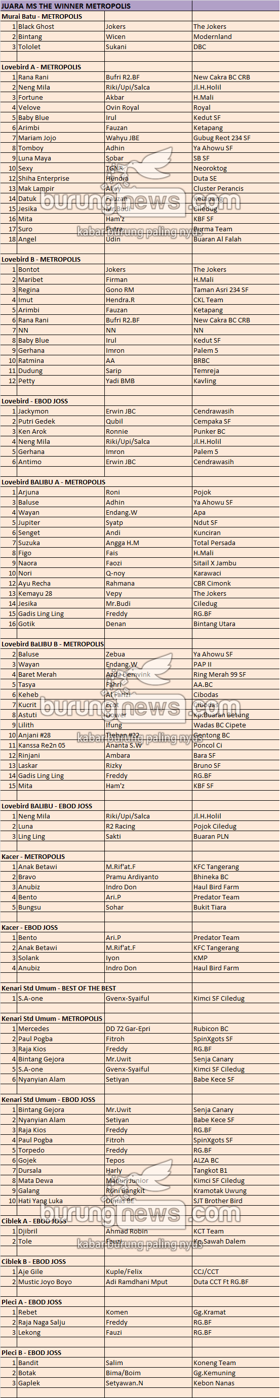 Hasil Lomba Burung