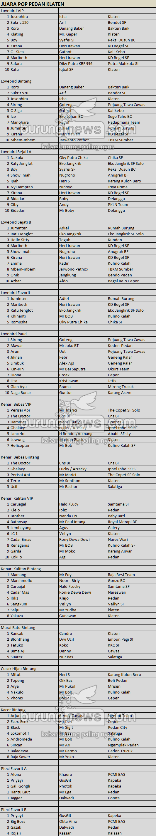 Hasil Lomba Burung