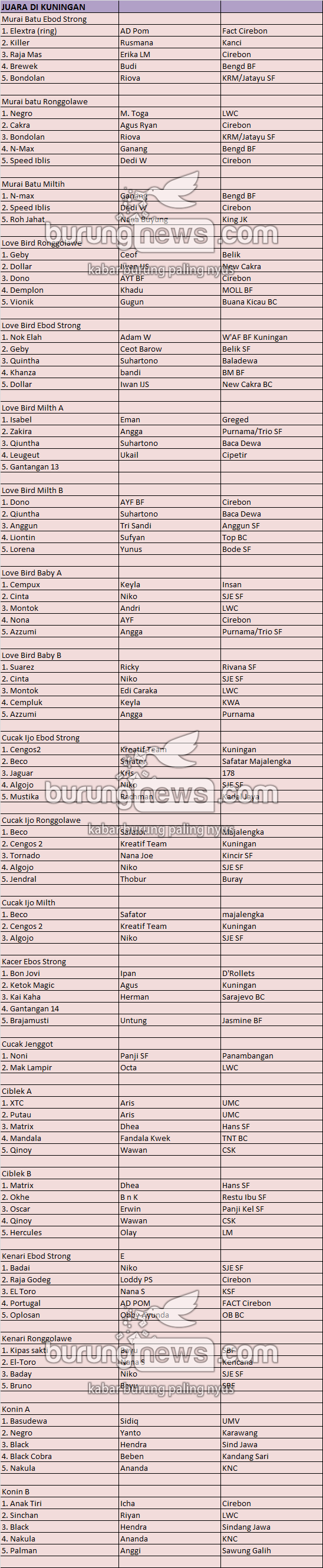 Hasil Lomba Burung