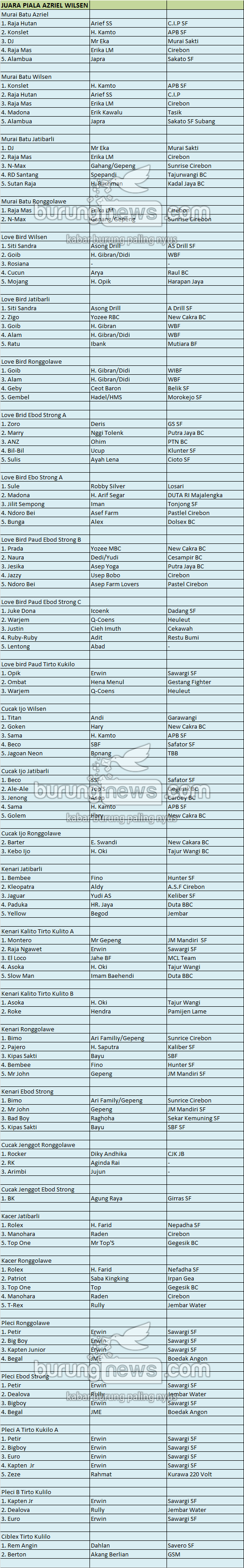 Hasil Lomba Burung