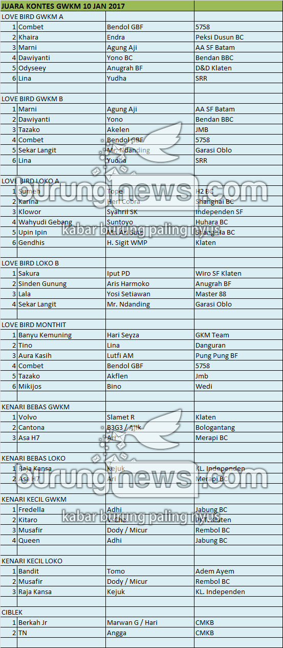 Judul : JUARA KONTES GWKM 10 JAN 2017