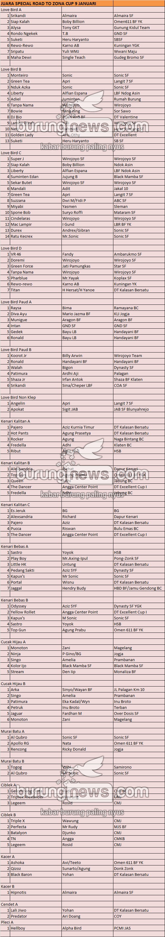 Hasil Lomba Burung