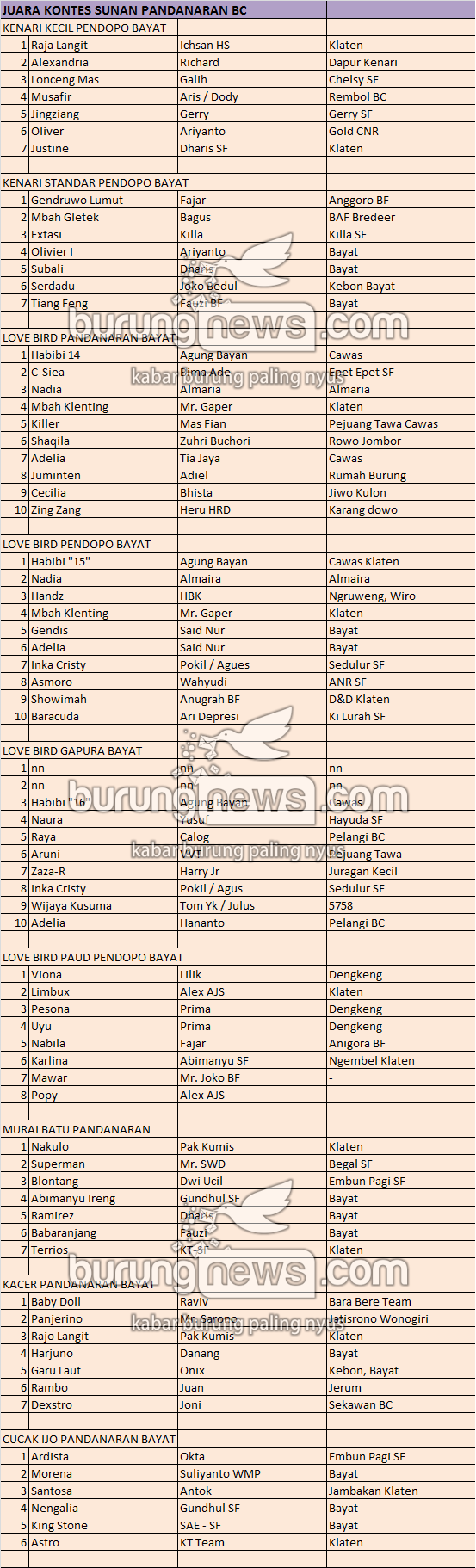 Judul : JUARA KONTES SUNAN PANDANARAN BC, 11 JAN