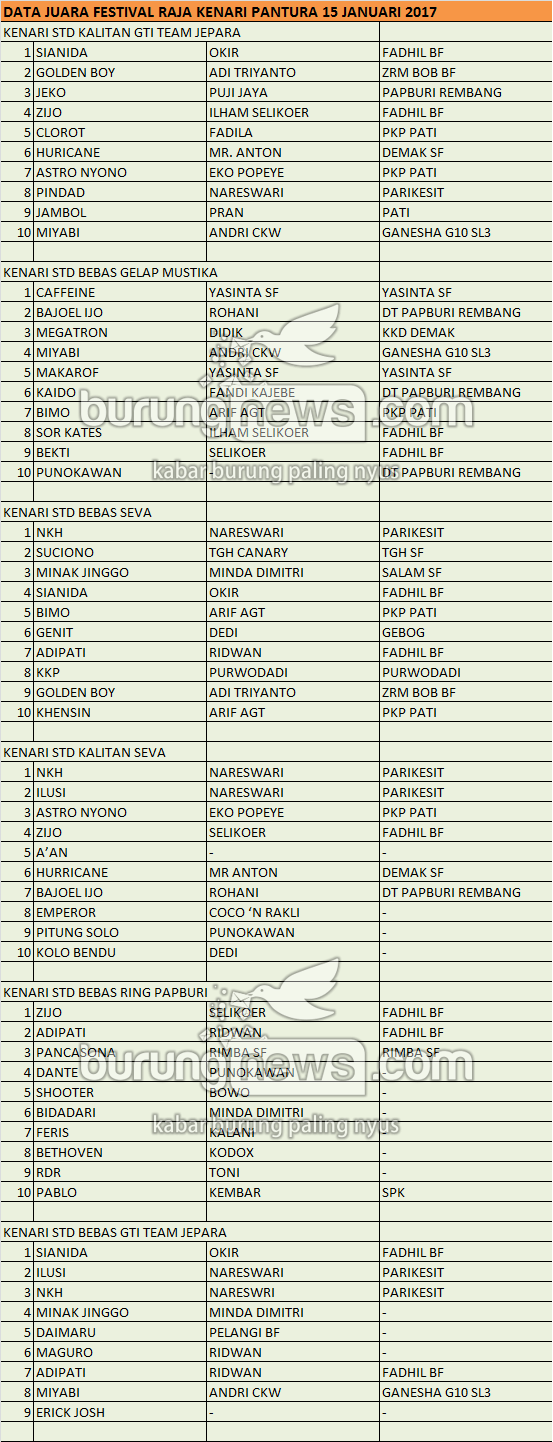Judul : JUARA FESTIVAL RAJA KENARI PANTURA KUDUS 15 JAN