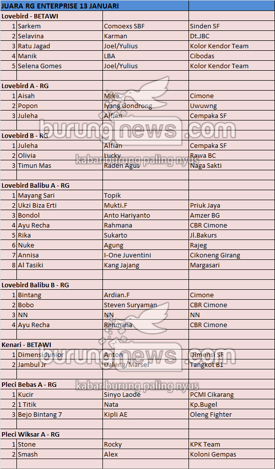 Hasil Lomba Burung
