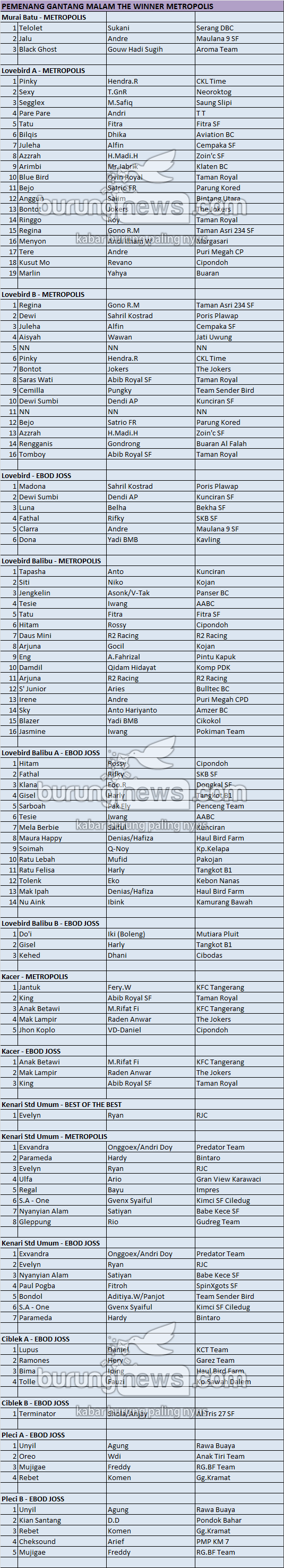 Hasil Lomba Burung