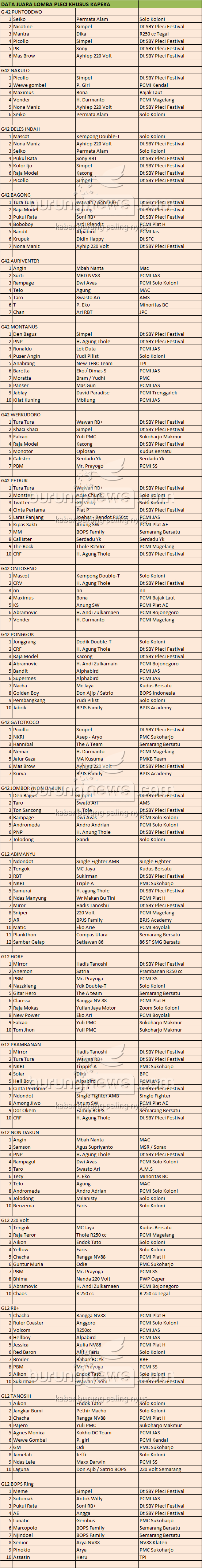 DATA JUARA KOPDAR NGABUBURIT GARASI ARENA: Sejumlah Jago Baru Mempesona, Jago Lawas Come Back