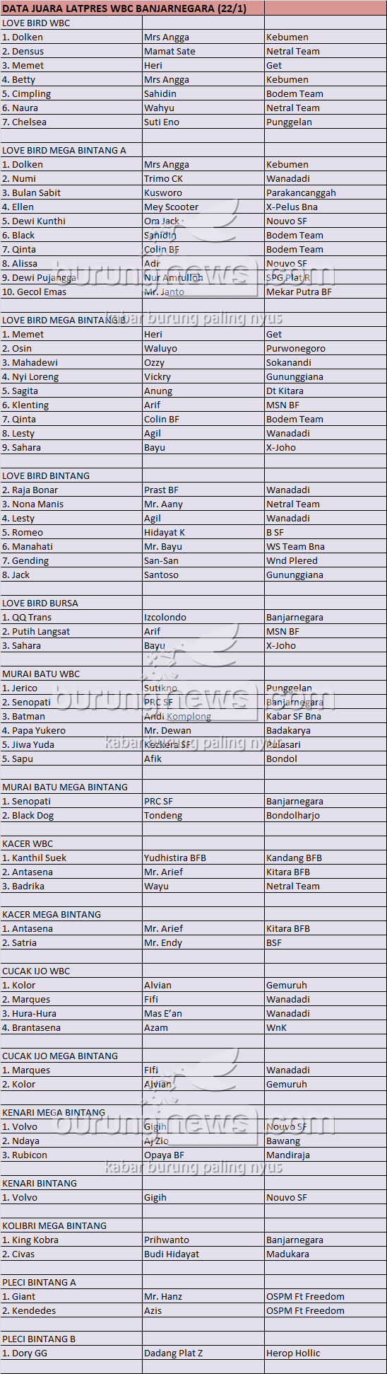 Hasil Lomba Burung