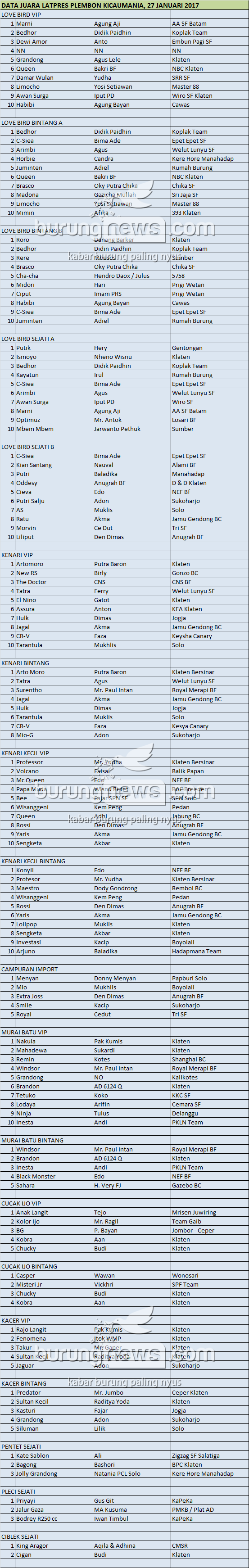 Hasil Lomba Burung