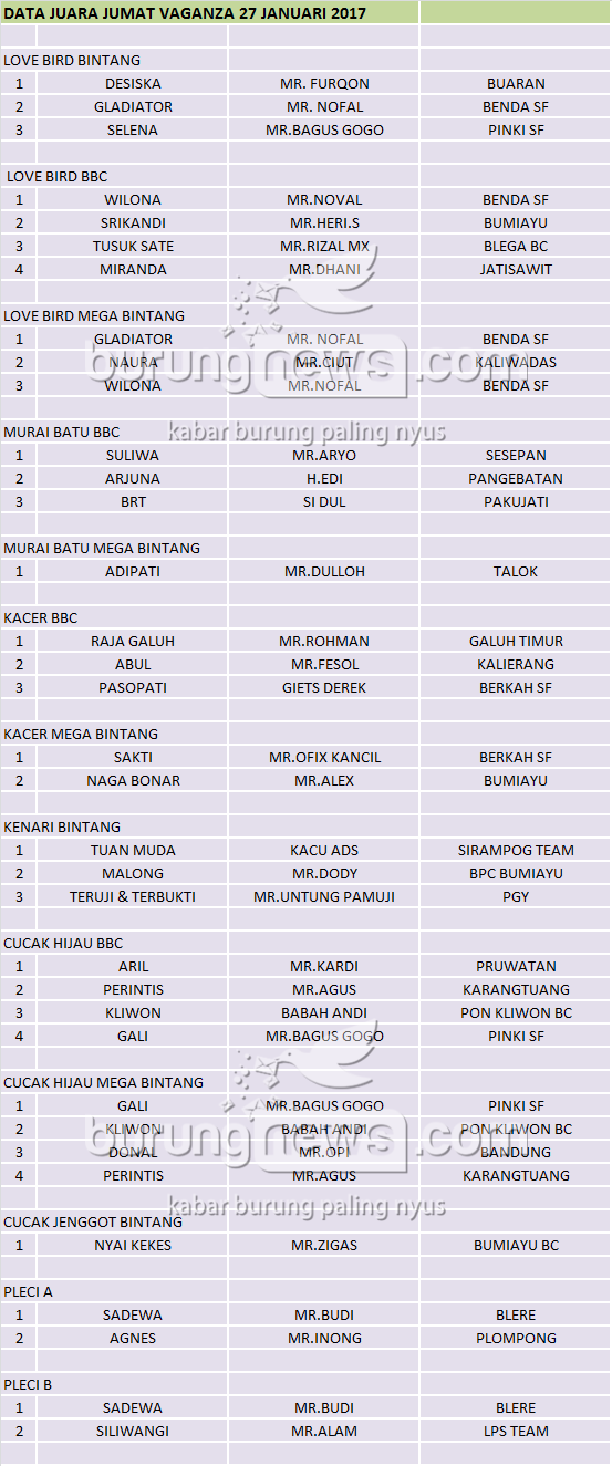 Hasil Lomba Burung