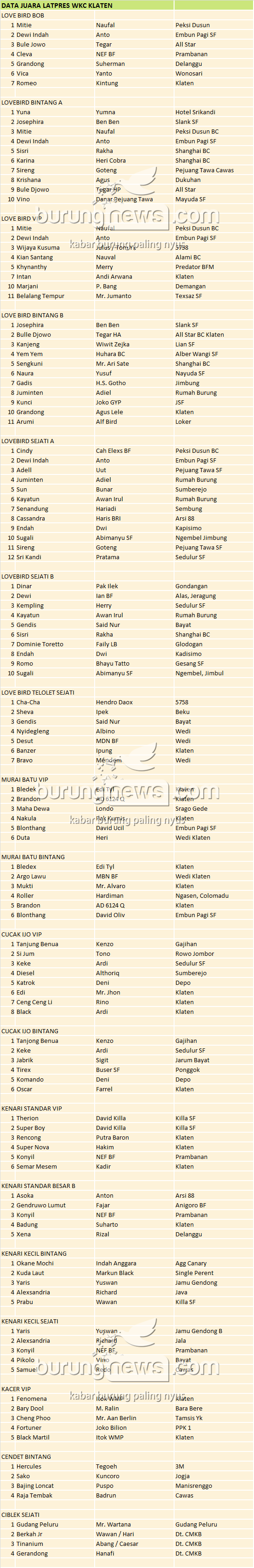 Hasil Lomba Burung