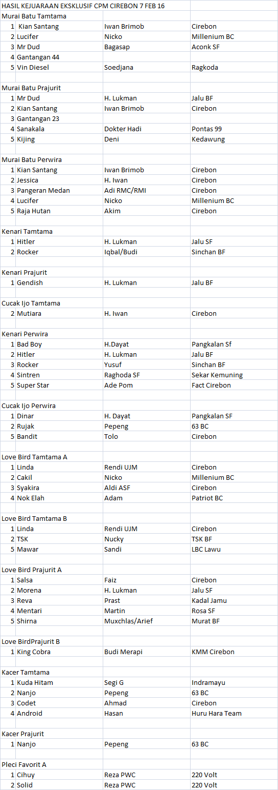 Judul : HASIL EKSKLUSIF CPM CIREBON 7 FEB 16