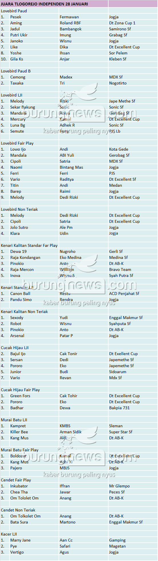 Judul : JUARA TLOGOREJO INDEPENDEN, 28 JANUARI 2017