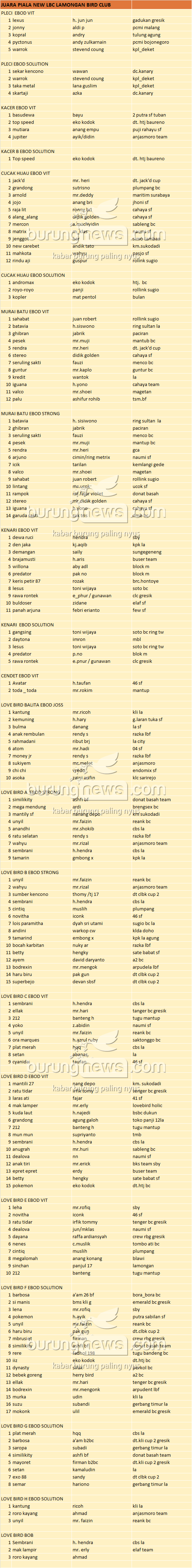 Hasil Lomba Burung
