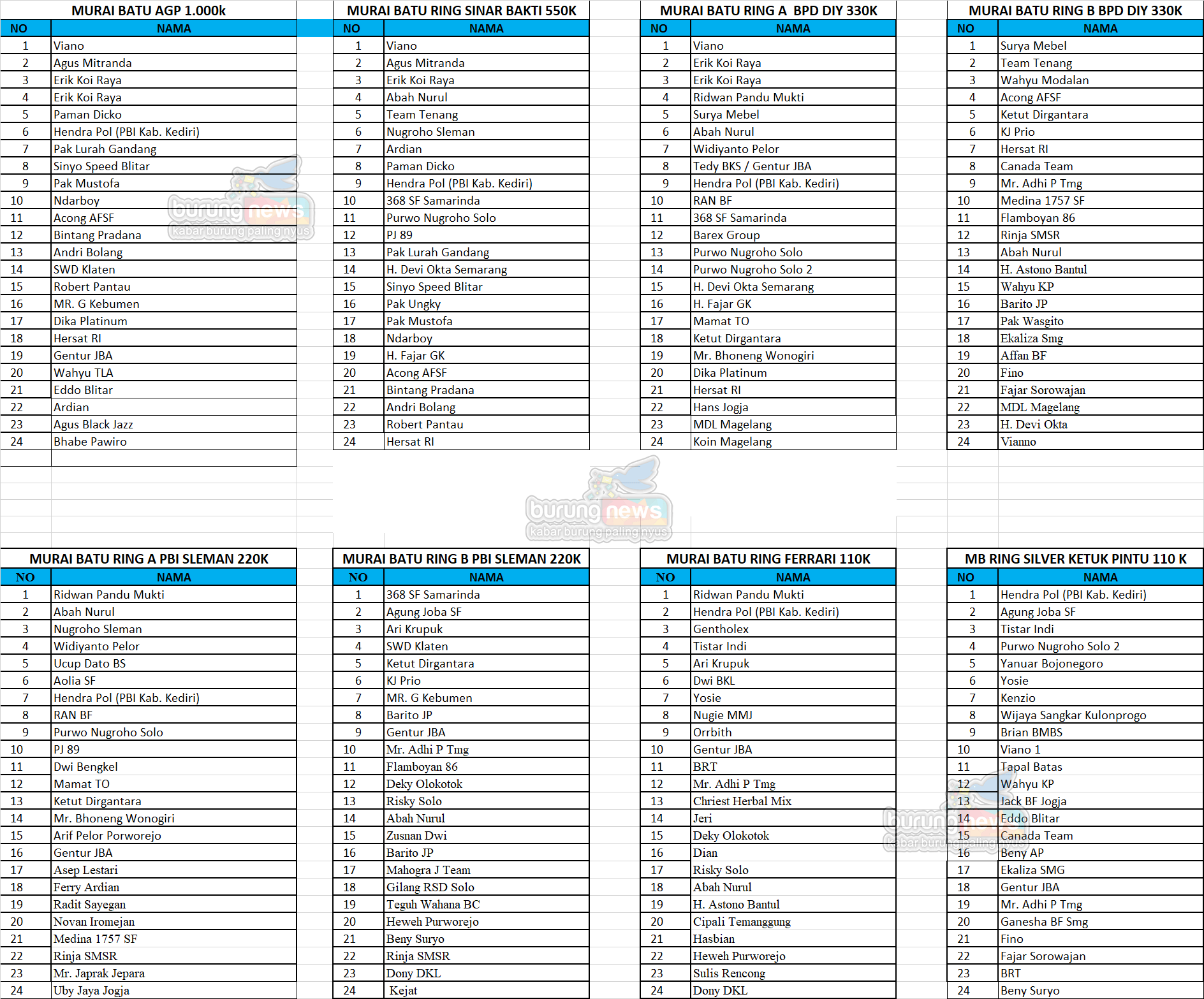 DATA PESERTA KELAS-KELAS MURAI BATU:
