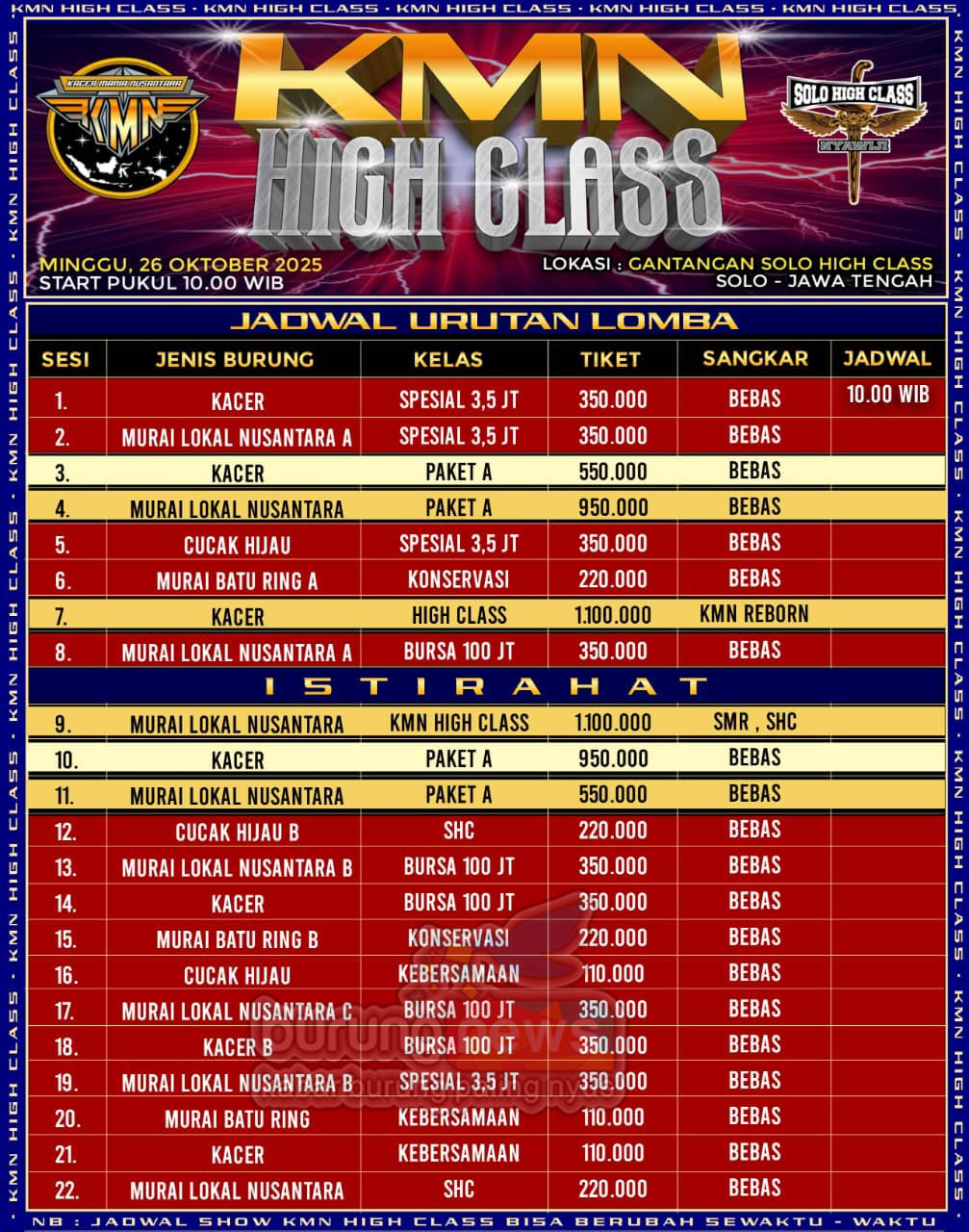 JADWAL KMN HIGH CLASS, KLIK DI SINI