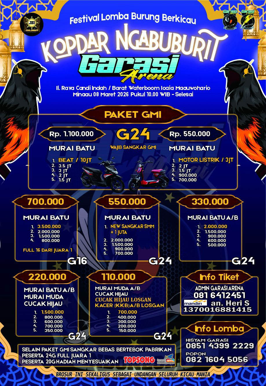 KOPDAR NGABUBURIT GARASI ARENA GARASI ARENA, TAMAN PARKIR JOGJA WATERBOOM (D/H JOGJA BAY) Minggu, 08 Maret 2026 Jam 10:03 Diliput oleh burungnews.com DOWNLOAD BROSUR