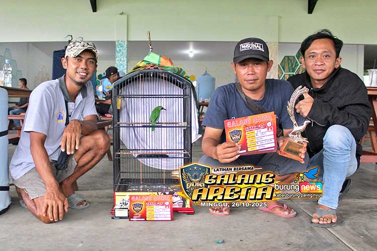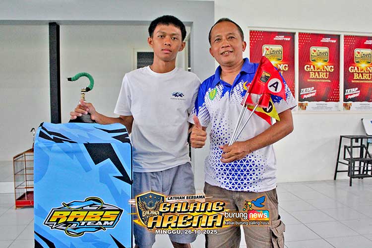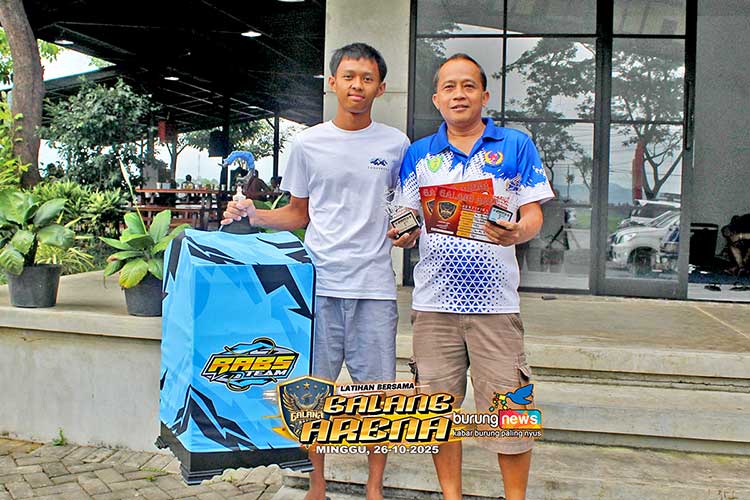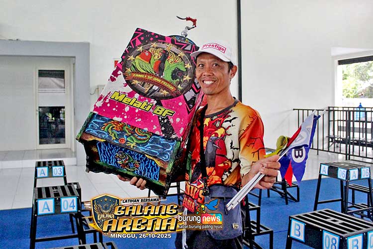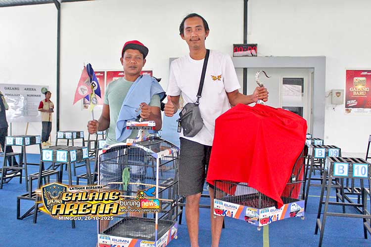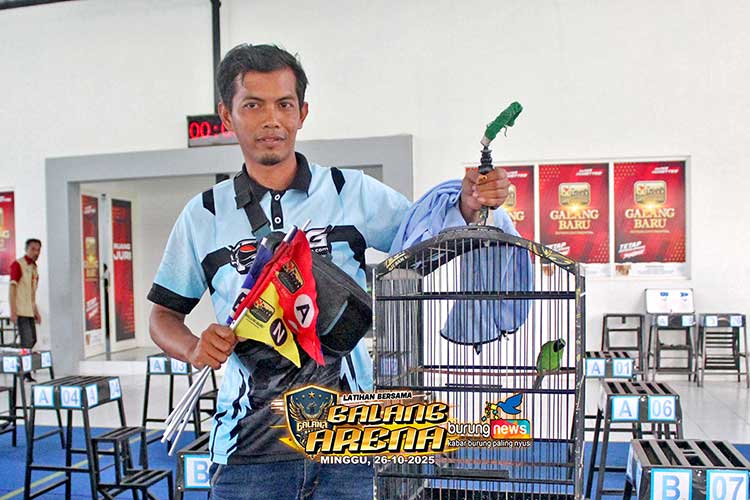 Cucak hijau Suka-Suka milik SS alias Mr. Sail dari Kepanjen yang setiap Minggu main di Galang, kali ini meraih juara satu di sesi Seduluran A 35K. “Alhamdulillah Suka-Suka sering masuk juara di Galang seperti hari ini juga meraih juara 1,” katanya.“Kondisi Suka-suka masih brodol 29 (bulunya rontok 29 helai, Red) tapi dipaksa. Karena harus setiap hari di gantang, kalau ngaso (istirahat, Red) malah brodol terus bulunya. Hal ini bisa terjadi mungkin karena nata birahinya dari situ. Kalau bulunya mungot tambah muncak birahinya,” kata SS yang akan selalu rutin main di Galang Arena.