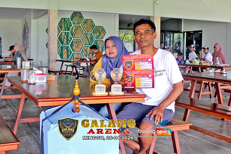 “Jabrix penampilannya bagus di sesi Seduluran A, di sesi awal-awal gak nemu tarungan,” kata Mr. Rudi. “Burung ini kondisi bulu tua, saat main di Road to Piala Bupati feat MBMS di Galang Arena (19/4) meraih juara 2 sesi Dinas A 75K,” terangnya. “Saya seringnya main Di Galang Arena, karena nyaman buat keluarga,” pungkas Mr. Rudi didampingi Istrinya.