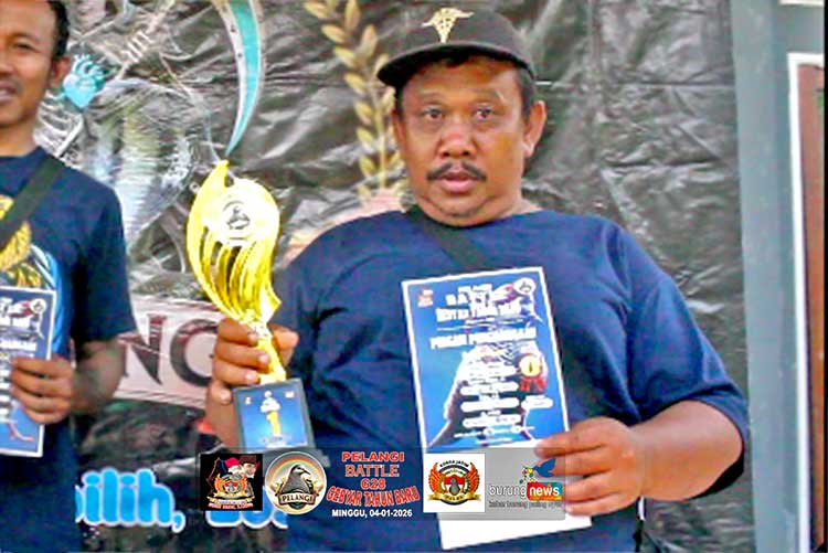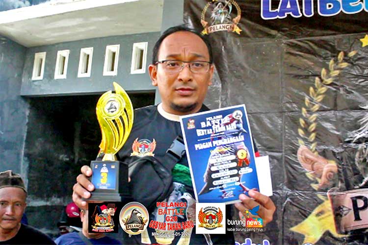 “Ini laga perdana Prabu, dan baru saya dapatkan seminggu yang lalu,” kata Mr. Sandy. “Saya beli dari orang rumahan, saya hanya melintas aja tapi saya tawar tidak di kasih, saya nunggu 6 bulan baru dilepas, harganya cuma 200K, langsung juara,” ungkapnya dengan bahagia.