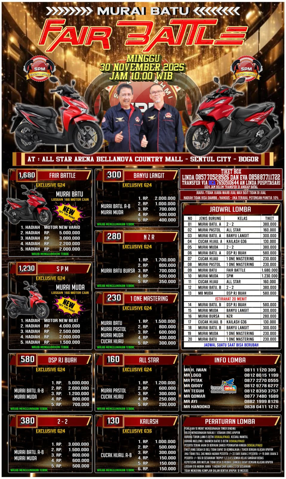 MURAI BATU FAIR BATTLE ALL STAR ARENA Minggu, 30 November 2025 Jam 10:00 Diliput oleh burungnews.com bersama juri SPM DOWNLOAD BROSUR