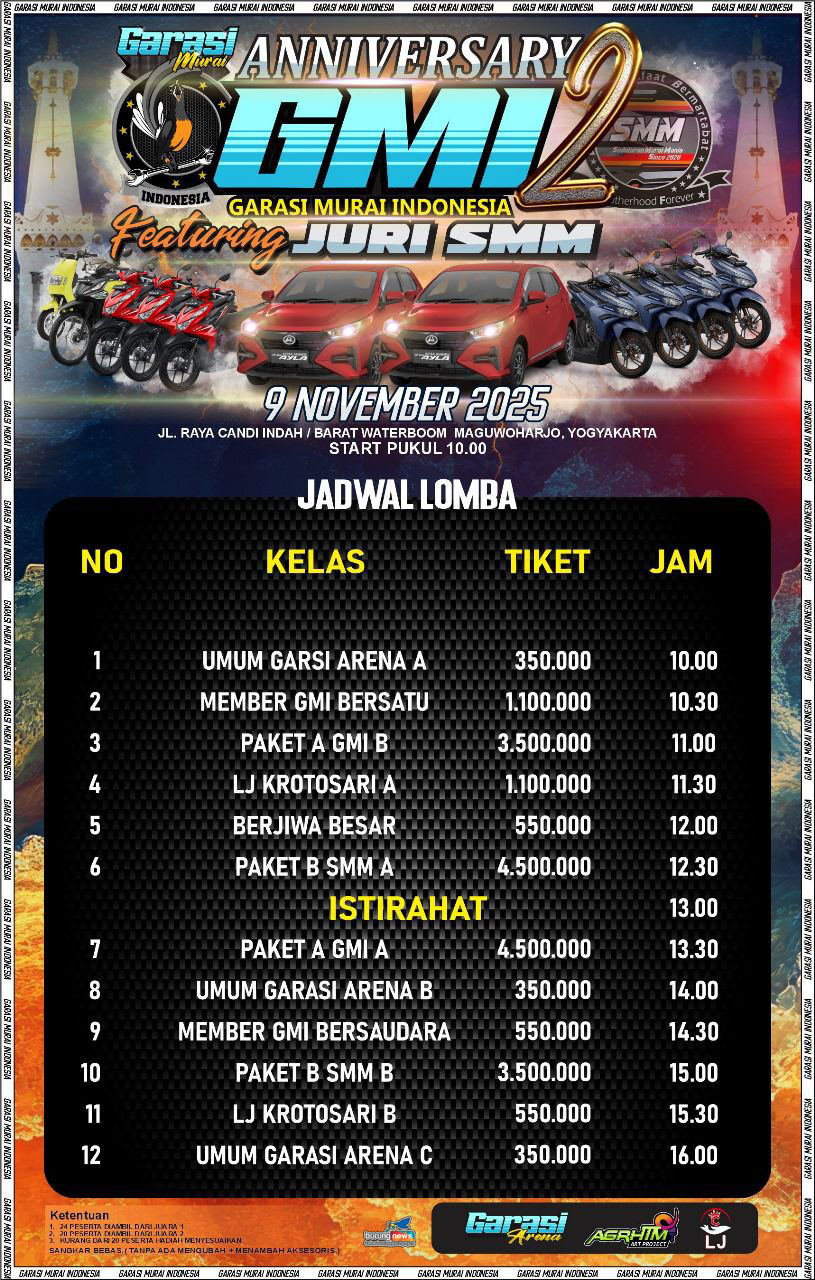 JADWAL LOMBA 2nd ANNIV. GARASI ARENA FEAT JURI SMM,
