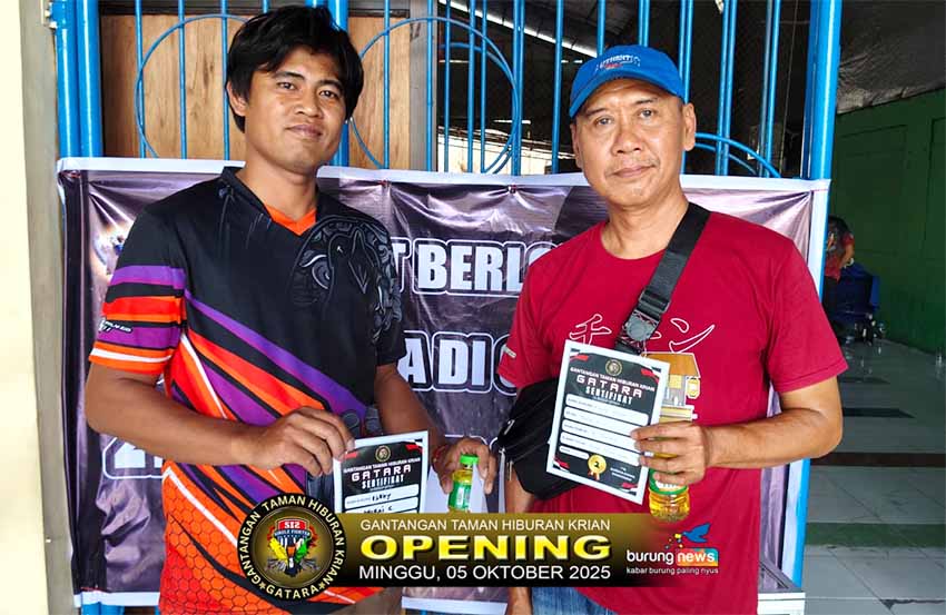 Tidak rugi, datang dari Surabaya untuk mencoba gantangan baru dari GATARA yang bertempat di Taman Hiburan Krian Indah. Dua gelar juara pertama berhasil disabetnya pada sesi murai batu A dan B. “Alhamdulillah masih bisa meraih hasil bagus hari ini mas, tapi XTC masih belum maksimal,” terang Rizal sang empunya burung kepada burungnews.