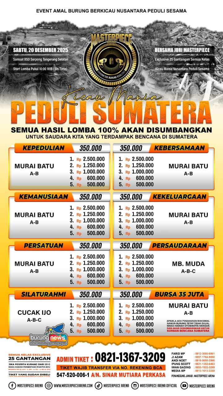 Setelah bertahun-tahun bertugas menjadi pengurus dan juri tetap di Masterpiece Arena, untuk gelaran pada Sabtu 20 Desember mereka menyatakan ikhlas tidak menerima honor. Apa yang terjadi?