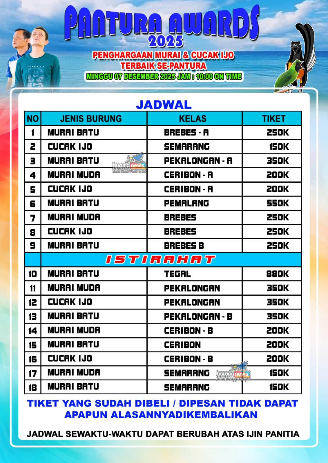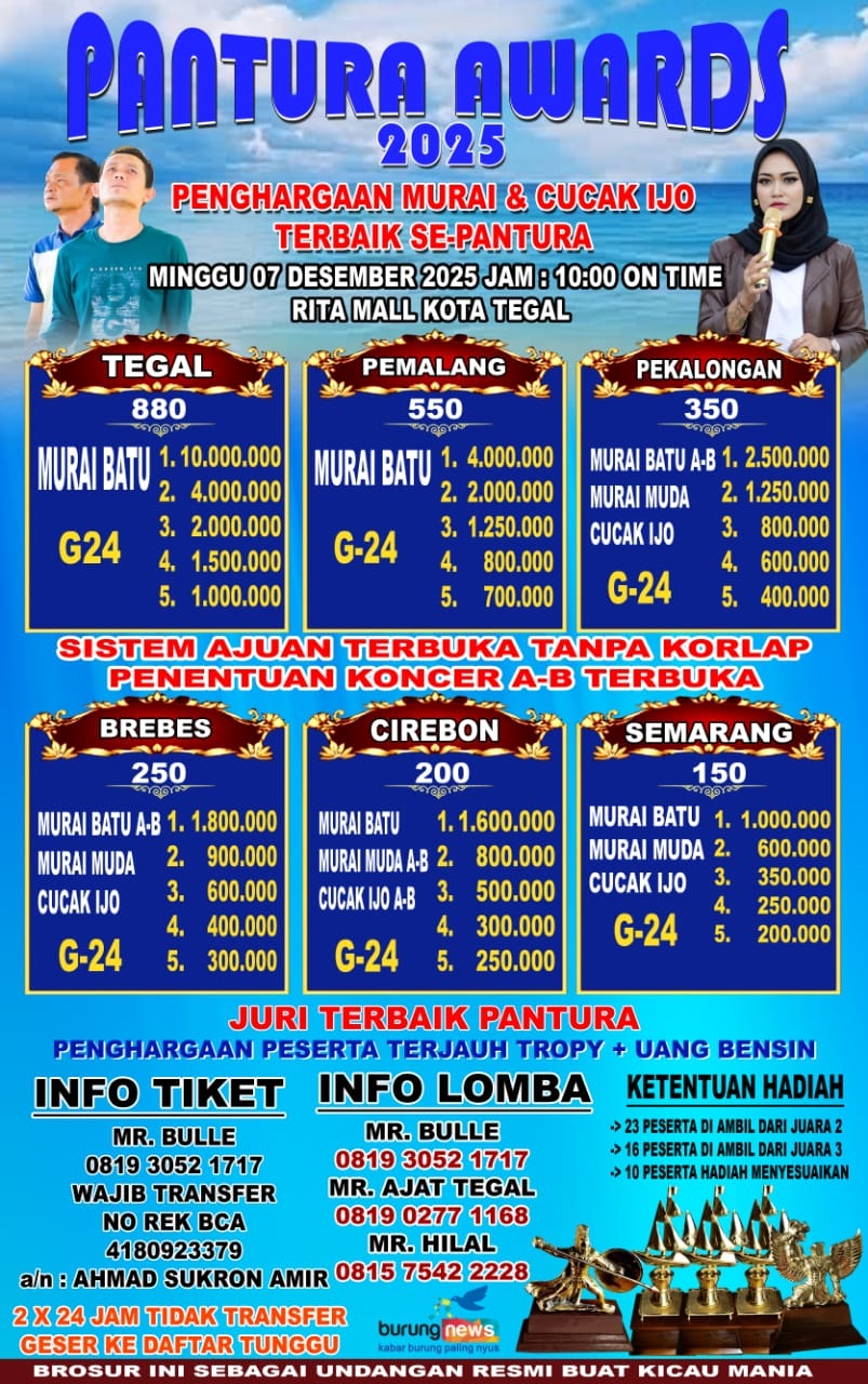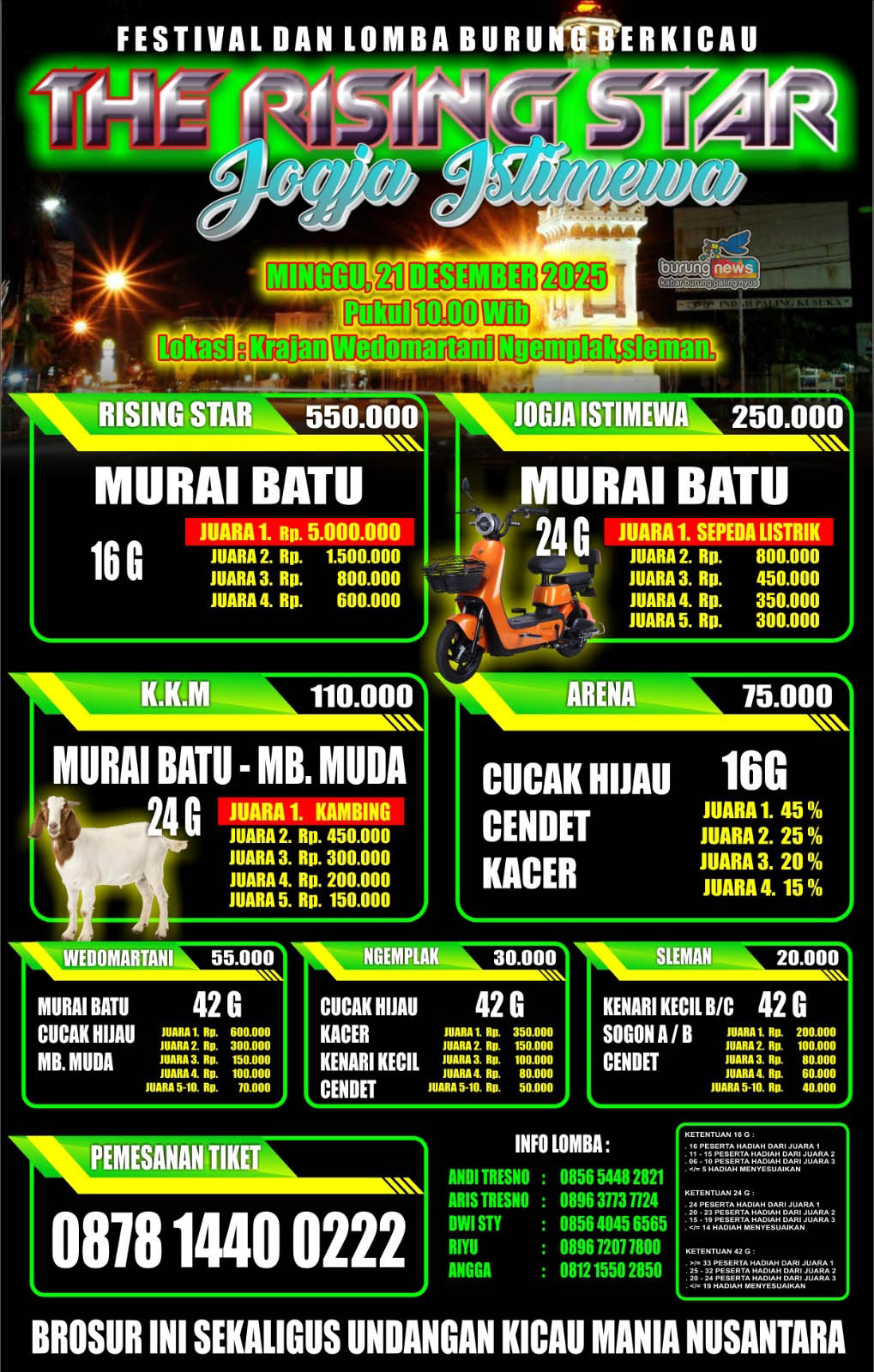 Waspada, panitia melaporkan sudah beredar brosur fiktif yang mengganti nomor admin dan rekening panitia. Pastikan menyimak brosur dan jadwal yang post di media terpercaya seperti burungnews.com, atau di face book Omasangkar Jogja. [maltimbus]
