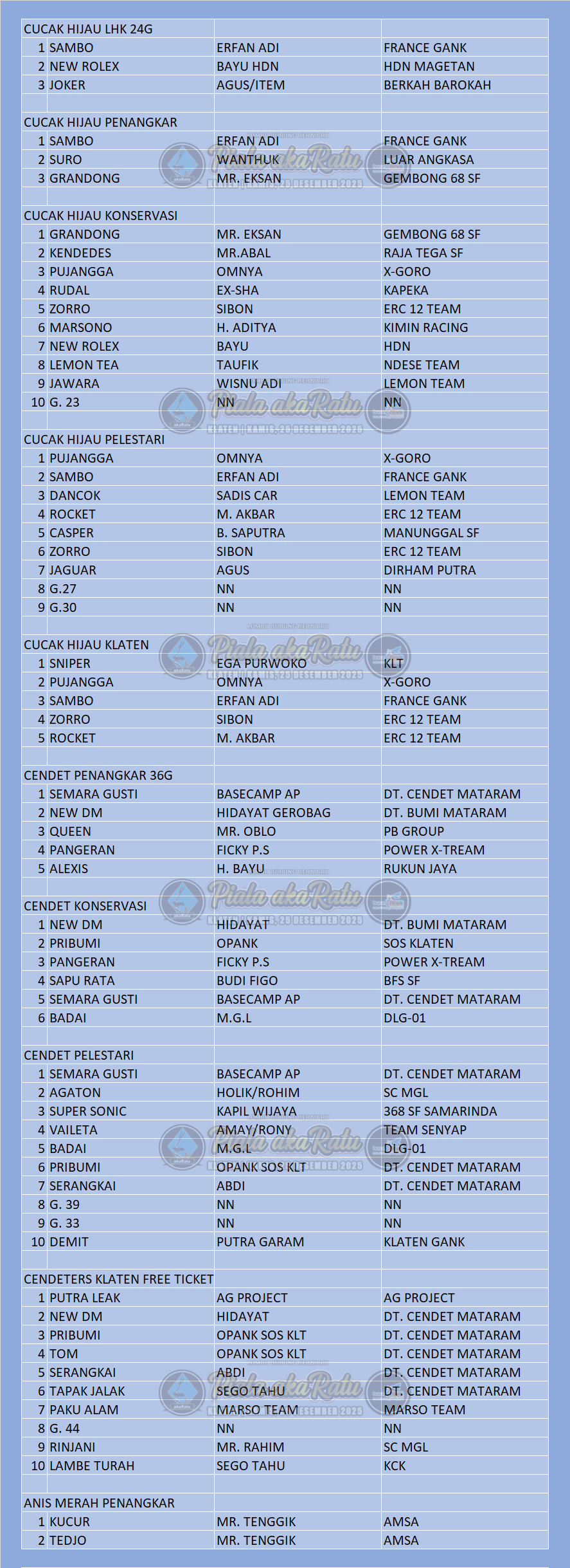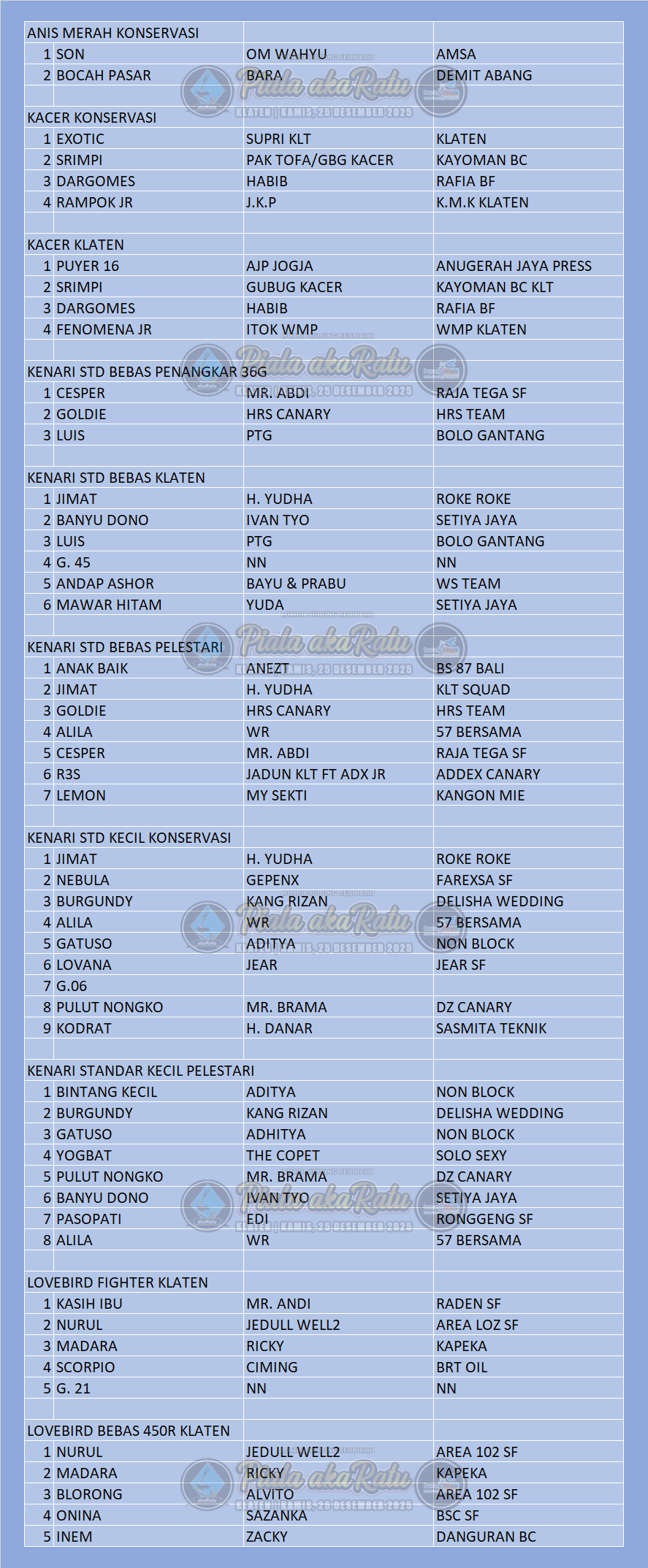 Di akhir lomba, Antok Akaratu mengucapkan banyak terima kasih atas kehadiran peserta di gelaran kali ini. “Terima kasih atas kehadiran teman-teman semua. Semoga lomba ini menjadi sesuatu yang baik dan bermanfaat bagi kicaumania Klaten dan sekitarnya. Sesuai permintaan teman-teman, kami Akaratu Klaten sedang mempersiapkan Kopdar yang akan digelar pada Januari 2026. Tunggu brosur dan informasi selengkapnya dalam waktu dekat,” pungkasnya.