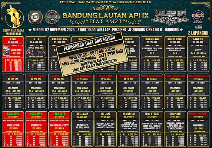 Dukungan komunitas Anis Merah pada gelaran Bandung Lautan Api Cup XI bersama N-105 Indonesia pada Minggu 2 November 2025 benar-benar full, habis-habisan. 10 kelas dengan status hadiah losgan diperkirakan belum cukup menampung antusiasme peserta.