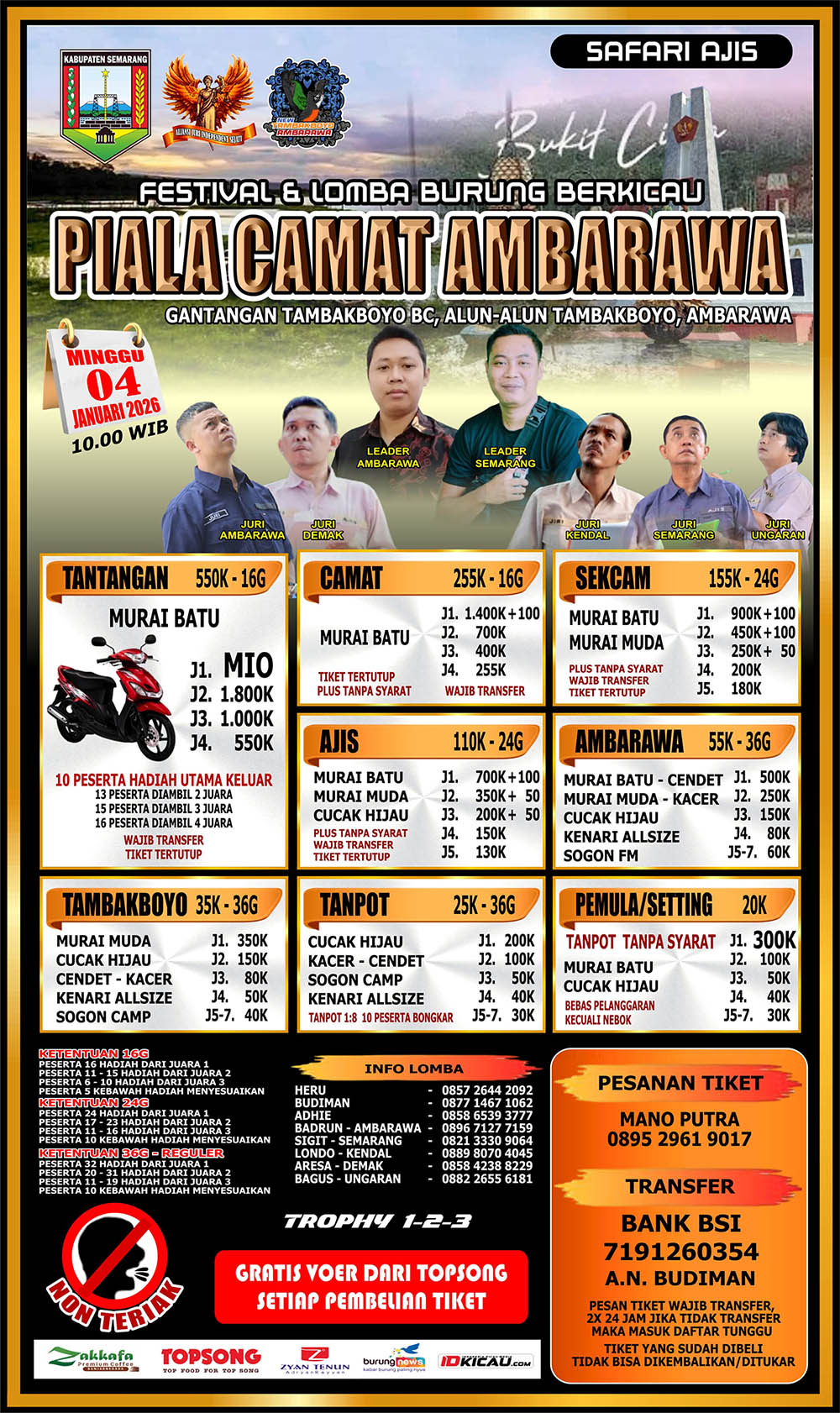 Hari sudah gelap, peserta Piala Camat Pageruyung, Kendal (14/12) masih penuh. Padahal, sempat diguyur hujan deras. Safari AJIS lanjut ke Jepara (28/12) dan Ambarawa (4/1/26)