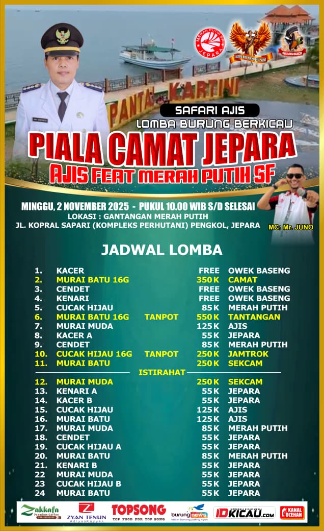 Kicaumania lintas daerah bahkan lintas blok kumpul satu titik di Pantai Alam Indah Tegal, Minggu 26 Oktober 2026. Event bertajuk Piala Walikota Tegal ini juga dihadiri langsung Bapak Walikota, H. Dedy Yon Supriyono, S.E., MM.