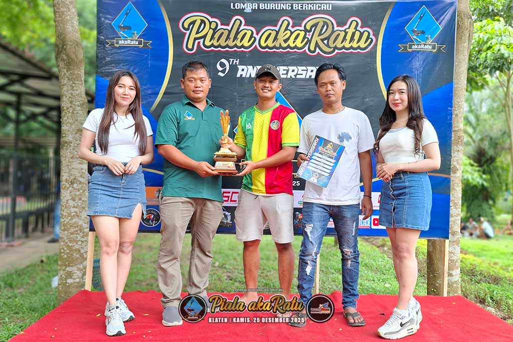 Diikuti 827 kontestan, Piala Akaratu yang digelar pada Kamis, 25 Desember 2025 di Taman Hutan Kota Gergunung, Klaten berlangsung sukses. Murai batu Macallan, cucak hijau Sambo, cendet Smara Gusti, dan kenari Jimat raih predikat burung terbaik.