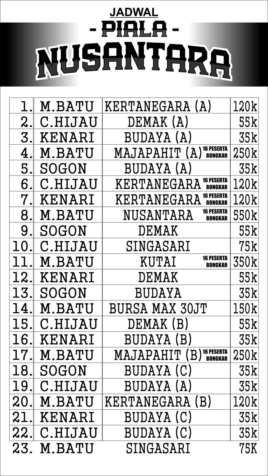 TIKET: 550K, 350K, 250K, 150K (BURSA), 120K, 75K, 55K, 35K