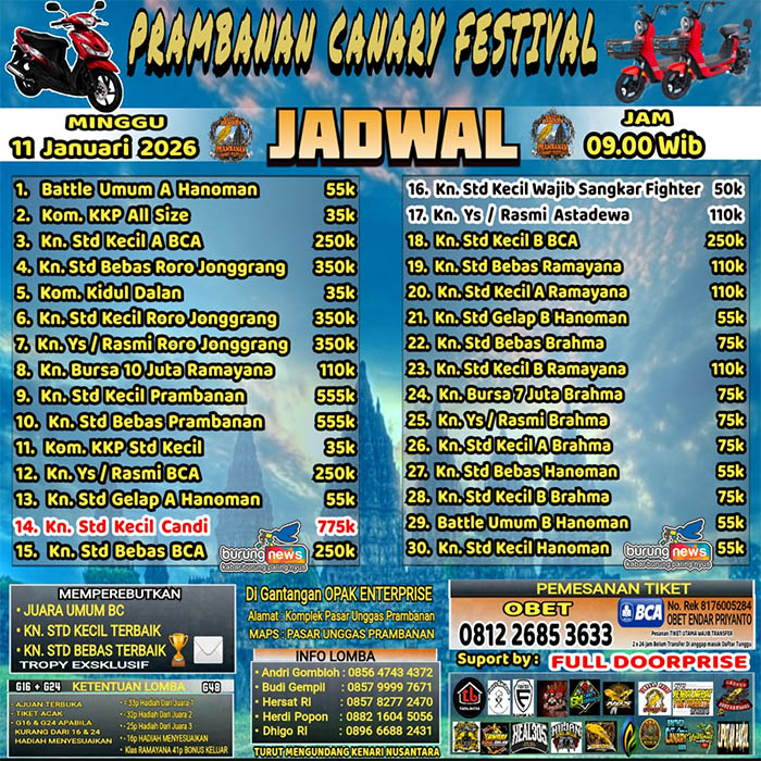 JADWAL PRAMBANAN CANARY FESTIVAL, KLIK DI SINI